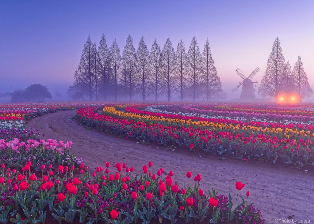 社員さんが撮影した、あけぼの山公園のチューリップ畑の写真です